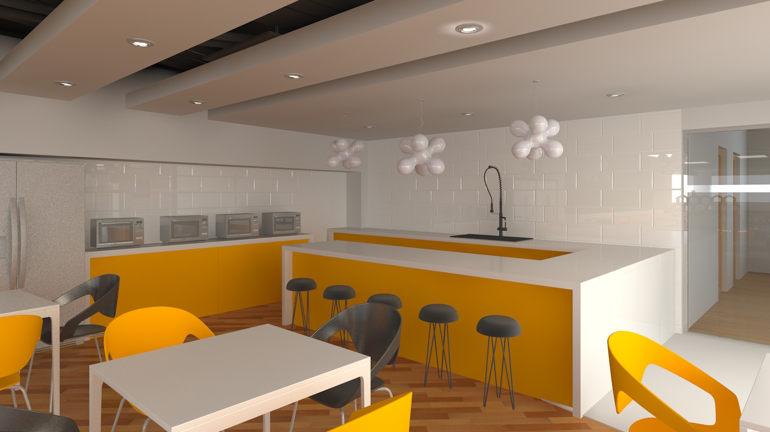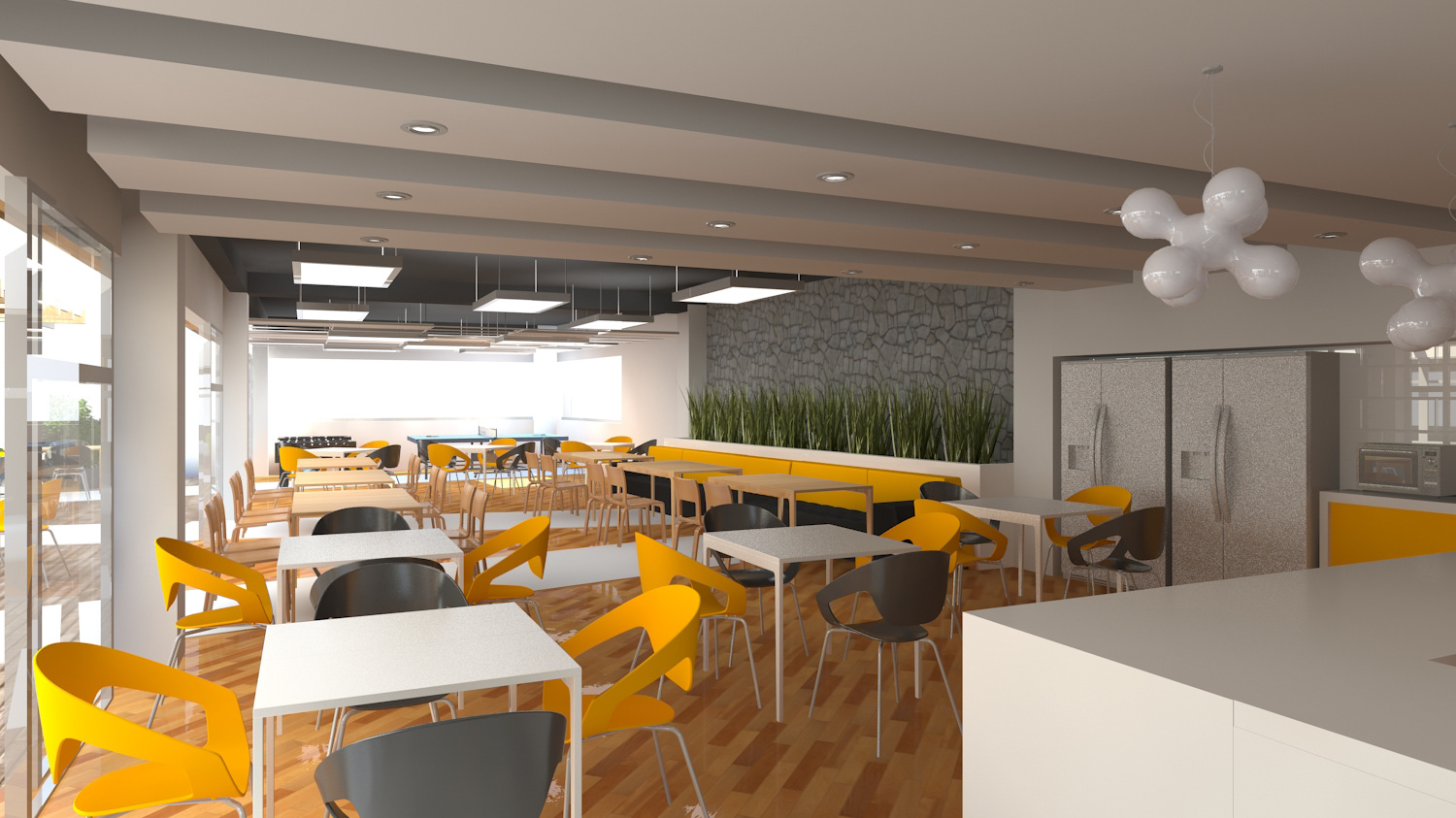 Diseño de Cafeteria y área de juegos oficinas corporativas.